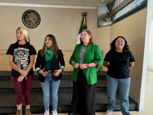 Acompañada por integrantes del colectivo Verde Aquelarre, la legisladora explicó que la propuesta será ingresada en la próxima sesión de la Diputación Permanente y se centra en derogar los artículos del Código Penal estatal que la Corte ha señalado como inconstitucionales.