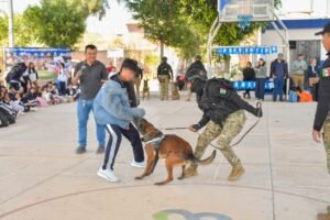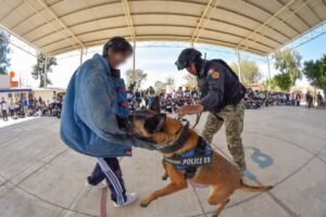 Como parte del cierre, se realizó una exhibición de la Unidad Canina K-9, donde las y los estudiantes conocieron el trabajo de los binomios en situaciones de riesgo y participaron en simulaciones demostrativas.