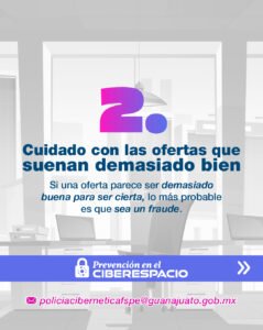 La Secretaría de Seguridad y Paz, a través de la Subsecretaría de Inteligencia Operacional, alertó sobre diversas modalidades de engaño en las que la ciudadanía puede ser víctima de supuestos empleos, difundidos mediante periódicos, llamadas telefónicas, mensajes de texto, correos electrónicos o redes sociales. Estas prácticas fraudulentas pueden derivar en delitos como fraude, extorsión e incluso trata de personas.