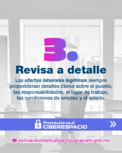 Las ofertas laborales legítimas siempre proporcionan información clara sobre el puesto, funciones, condiciones de trabajo y salario, por lo que cualquier omisión debe generar desconfianza.