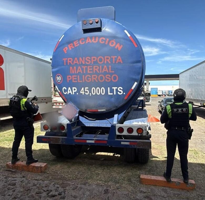Los oficiales consultaron el estatus de la unidad con el Sistema estatal C5i y se confirmó que no contaba con reporte de robo. Ante la fuga activa, el riesgo para la población y la ausencia de documentación que acreditara la posesión o la procedencia legal del combustible, los integrantes de la PEC procedieron al aseguramiento.