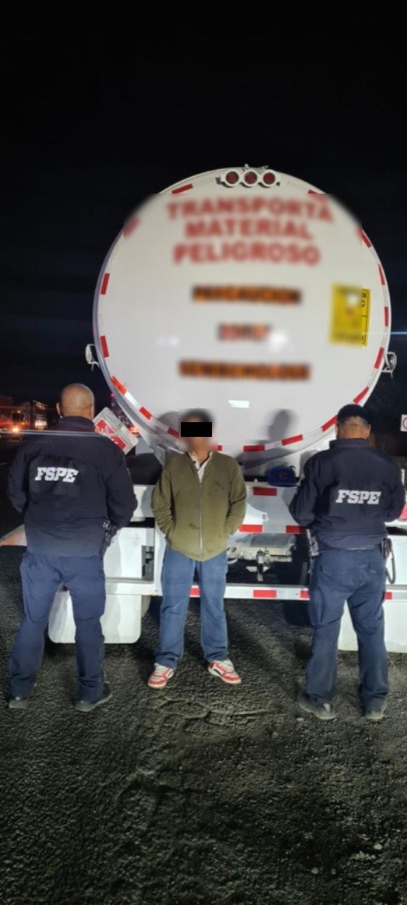 La persona detenida se identificó como Juvenal “N”, de 38 años con domicilio en Poza Rica de Hidalgo, Veracruz quien presentó documentación con inconsistencias y no acreditó la procedencia legal del hidrocarburo transportado.