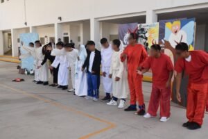 León, Gto., 13 de diciembre de 2025.– A través del humor, la creatividad y la reflexión, adolescentes en proceso de reintegración social presentaron la pastorela “Caminando hacia la reinserción, digo a Belén”, una puesta en escena realizada por 14 jóvenes del Centro de Internamiento Especializado para Adolescentes, de la Secretaría de Seguridad y Paz.