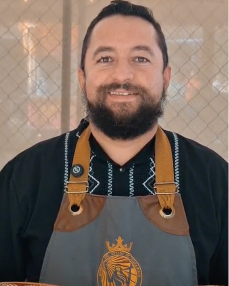 Desde pequeño, Aarón creció entre tortillas hechas a mano, guisos de salsa roja y el aroma del chile molido en molcajete, con su abuela como principal inspiración. Aunque no se imaginaba como cocinero tradicional, su amor por la gastronomía lo llevó a formarse, abrir sus propios espacios culinarios y mantener viva la identidad de su comunidad.