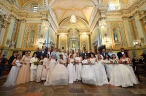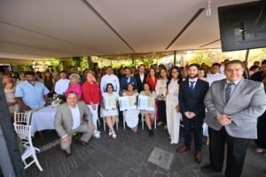 Horas antes, ocho parejas celebraron su matrimonio religioso en una ceremonia a la que asistió como invitada especial la presidenta municipal Samantha Smith, quien encabezó esta jornada dedicada a fortalecer la convivencia y el sentido de comunidad en la capital del estado.
