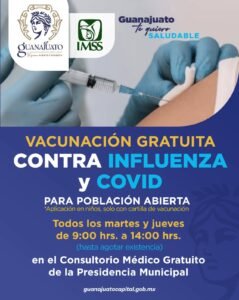 Guanajuato, Gto., 06 de noviembre de 2025. – Con el objetivo de reforzar la protección de la ciudadanía ante las enfermedades respiratorias propias de la temporada invernal, el Gobierno Municipal de Guanajuato puso en marcha jornadas de vacunación contra la influenza y COVID-19, en coordinación con el Instituto Mexicano del Seguro Social (IMSS).