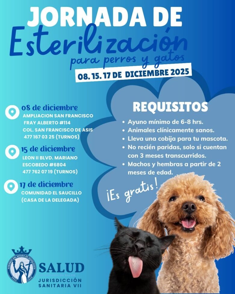 León, Guanajuato. – En estrecha coordinación con el Municipio de León, la dependencia estatal mantiene activa su campaña permanente de esterilizaciones caninas y felinas, una estrategia fundamental para la salud pública y el bienestar animal.