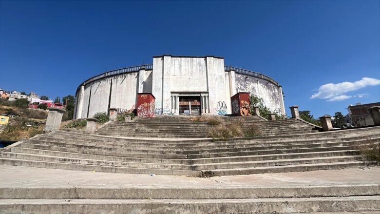La Plaza de Toros Santa Fe, ubicada frente al Auditorio Estatal en Guanajuato capital, Inaugurada en 1979, esta construcción que alguna vez albergó a cientos de aficionados taurinos hoy luce despintada, llena de grafitis y con daños visibles que la mantienen en ruinas.
