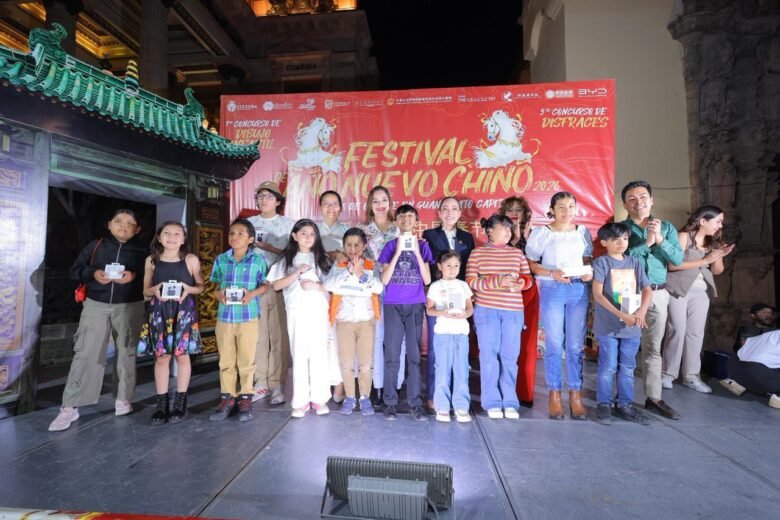 Guanajuato, Gto., 4 de marzo de 2026.– En un ambiente de creatividad y convivencia familiar, la presidenta municipal Samantha Smith encabezó la ceremonia de premiación de los concursos de dibujo infantil y disfraces realizados como parte del Festival del Año Nuevo Chino 2026 en la capital del estado.