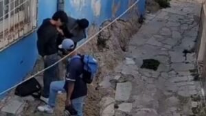 En la grabación se observa cómo uno de los agresores se acerca al muchacho que incluso parece ser menor de edad, le muestra el arma blanca y comienza a sacar objetos de su mochila. Segundos después, aparecen otros dos cómplices, uno de ellos “echa aguas” mientras el otro le arrebata sus audífonos, la mochila y lo que parece ser una cadena.