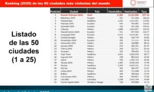 A nivel nacional, México se mantiene como el país con más municipios dentro del listado, con 17 de 50, aunque por primera vez desde 2013 solo dos ciudades mexicanas figuran entre las 10 más violentas del mundo: Culiacán y Ciudad Obregón.